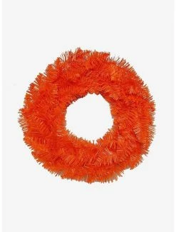 Add to your spooky Halloween decor with this 18-inch Unlit Orange Wreath from Kurt Adler. Its all-orange design has 60 tips and double metal ring construction. Perfect for hanging on doors to welcome all the little ghouls and goblins during the Halloween season. This wreath is unlit and does not include any lights.