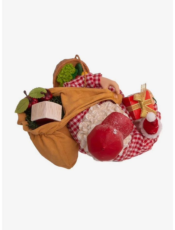 Santa is enjoying life on the farm growing his own fruits, vegetables and livestock with this 10.5-inch Fabriche Farmer Santa from Kurt Adler. Life is good and he really enjoys the “farm to table” lifestyle. Best of all he loves to share his bounty with others. Just looking at the expression on his face lets you know that Santa is enjoying the simple life. Our exclusive farmer Santa is meticulously made using our traditional techniques of mixed media, pvc, resin and our authentic Fabriche fabric.