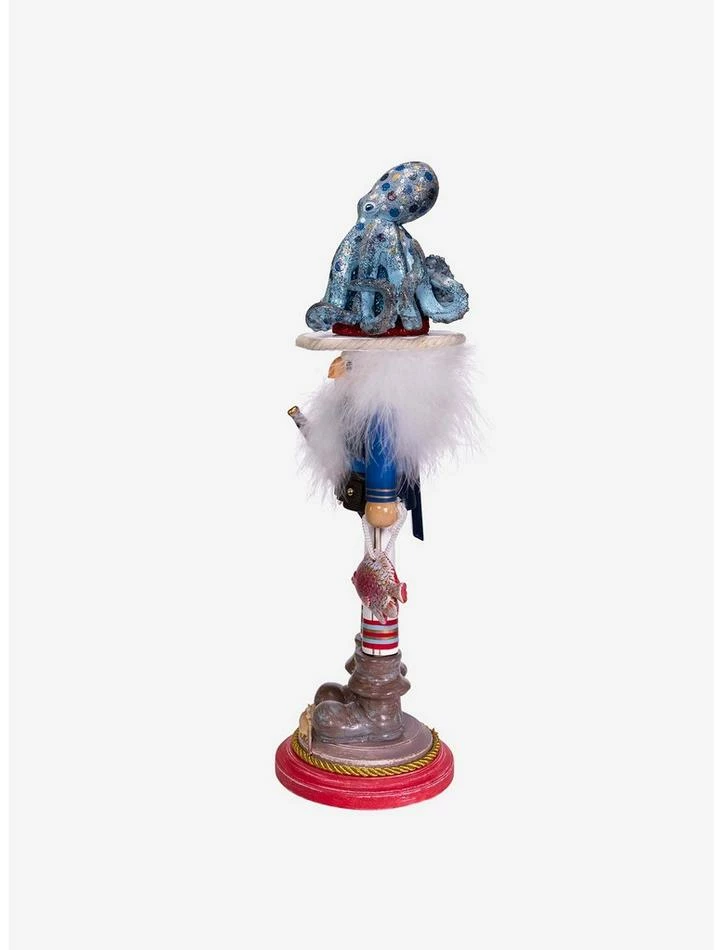 Hollywood Nutcrackers is a whimsical collection of nutcrackers created exclusively for Kurt S. Adler, Inc. and features an assortment of designs that put a unique, vibrant, memorable twist on traditional nutcrackers. This 18-inch Hollywood Octopus Hat Nutcracker is surrounded by everything to love about the sea. He’s wearing an octopus on his hat, holding a fish and telescope, and standing around seashells, bringing sea life to any home!