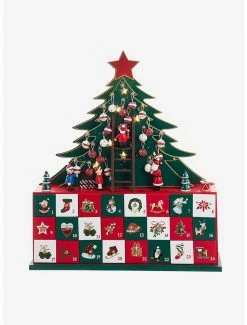 This 13.5-inch battery-operated LED Christmas Tree Advent Calendar from Kurt Adler is a fun and festive way to count down the days until Christmas during the Advent season! Its unique design includes a large Christmas tree framing a scene in which Santa Claus and his helpers are decorating the tree. The tree is pre-lit with 8 warm white LED lights. The base for this tranquil scene contains 24 tiny doors, each with an ornament with which you can place on the tree each day. This item requires 2 AA batteries (not included).