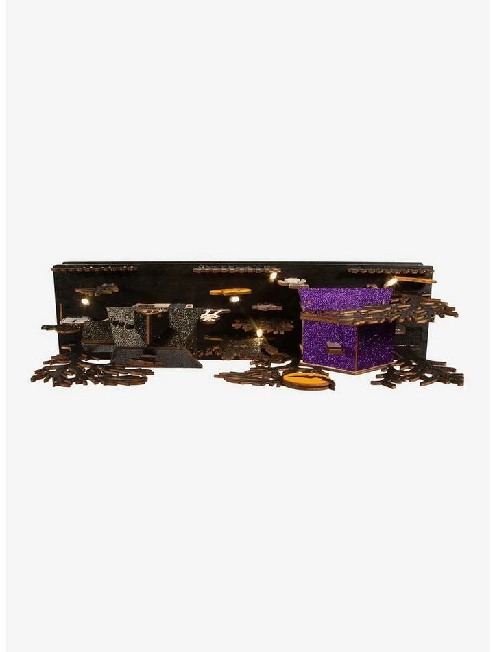 Add a fun, spooky touch to your Halloween decor with this 7.9-inch battery-operated Light Up Musical Halloween Village from Kurt S. Adler. It features two glittered houses, black glittered trees and crows, a mummy and skeleton, carved pumpkins and tombstones. When switched on, 10 warm white LED lights illuminate the village for an eerie glow