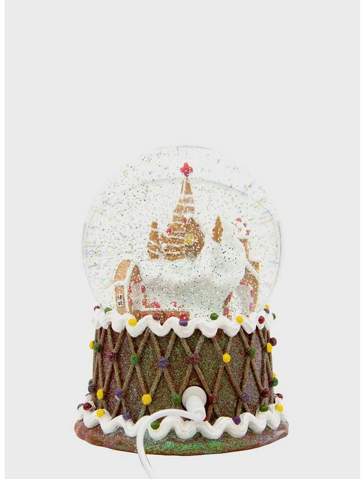 This 120MM battery-operated Musical Gingerbread Snow Globe from Kurt Adler is a festive addition to any home or office holiday decor. It features a gingerbread house set atop a decorated gingerbread base, when switched on it is softly illuminated and plays 8 tunes: “We Wish You A Merry Christmas,” “Oh Christmas Tree,” “Jingle Bells,” “Deck The Halls,” “The First Noel,” “Joy To The World,” “Hark! The Herald Angels Sing” & “Silent Night” . This snow globe also includes a DC port and USB cable for ease of use. It uses 3 AA batteries, not included.