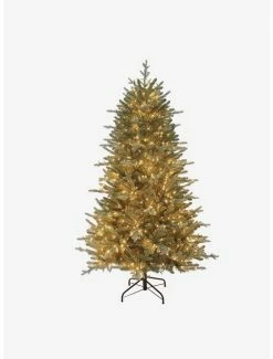 This 6-foot Pre-Lit LED Blue Spruce Tree from Kurt S. Adler is a beautiful and festive addition to any holiday decor. Its design boasts 2078 tips and a 45″ diameter, a metal folding leg base and is Pre-Lit with 1400 warm white, 3MM cluster lights. This tree also has hinged construction.
