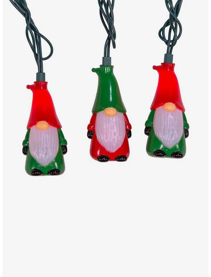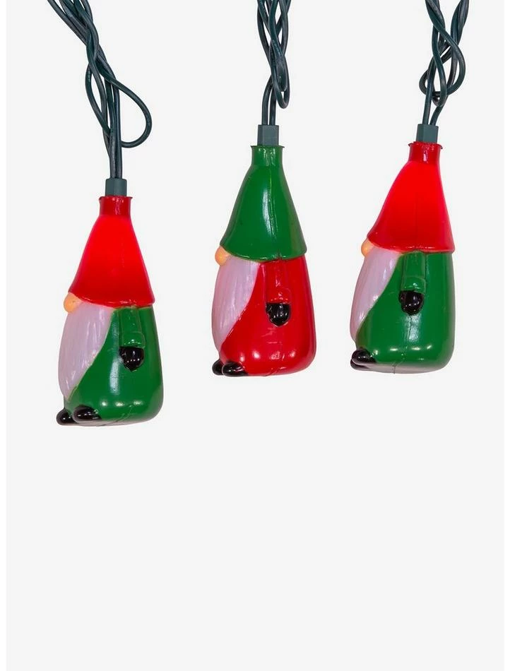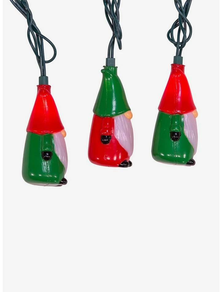 This Kurt Adler UL 10-light Red and Green Gnome Light Set is a fun, festive way to add to your holiday or theme party decor. Each of the 10 clear incandescent lights in this set has a traditional red and green gnome light cover. There is a 30 inch lead wire, 12 inch spacing and a 6 inch tail. This light set is a great addition to any decor.