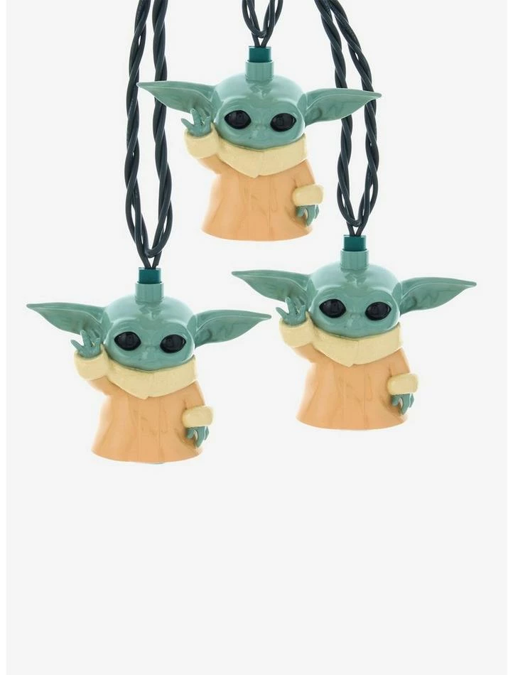 Celebrate the holidays with this UL 10-light Star Wars The Child Light Set by Kurt S. Adler. Each light cover features The Child waving and each set features a 24-inch lead wire and 8-inch light spacing. This light set makes for the perfect gift for Star Wars fans and collectors!