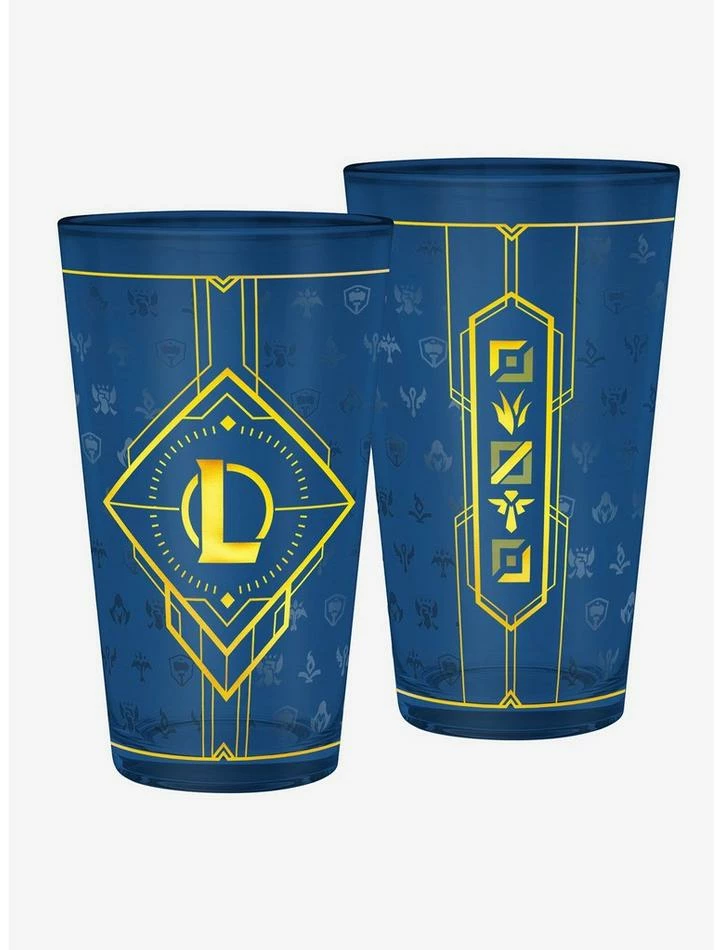 Officially licensed League of Legends products. Gift set includes one Hextech glass, one pin, and one notebook. Hextech glass holds approximately 16 oz. Hextech Notebook features 180 lined pages. Hextech Pin is made of high quality metal.