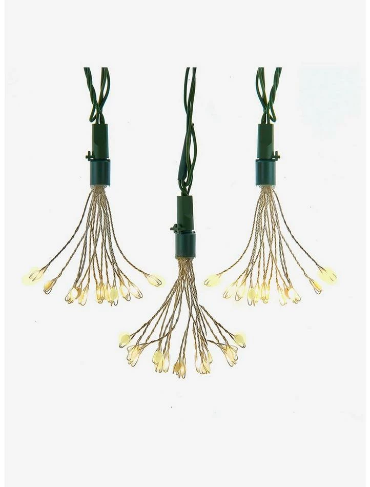 Add some light to your home or holiday decor with Kurt Adler’s 75 Light Cluster Lights and Warm White Twinkle LED Lights with Green Wire. This light set features 5 bursts with 15 lights per burst for a total of 75 lights. Each burst has 5 twinkle lights and 10 steady lights. There is a silver 36″ wire between each burst as well as a 118″ lead wire.