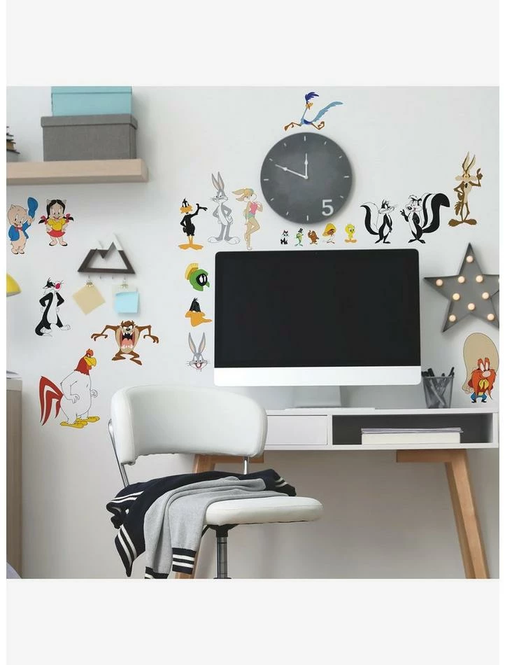 Love Looney Toons? Bring all of your favorite Looney Toons characters to your walls with RoomMates Decor Looney Toons Peel and Stick Wall Decals! Your favorite Warner Brothers characters can dance around your room as your reposition them over and over without ruining your walls. Includes 24 decals – 1.01 inches x 1.55 inches to 6.60 inches x 8.66 inches.