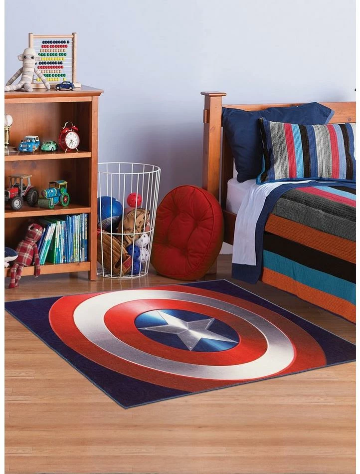 Avengers fans young and old will feel the power of the shield right under their feet with this Captain America super hero area rug. Jumbo rug measures 4’6″ X 6’6″ and is digitally printed providing great color and detail. A must have for any Marvel Fan.