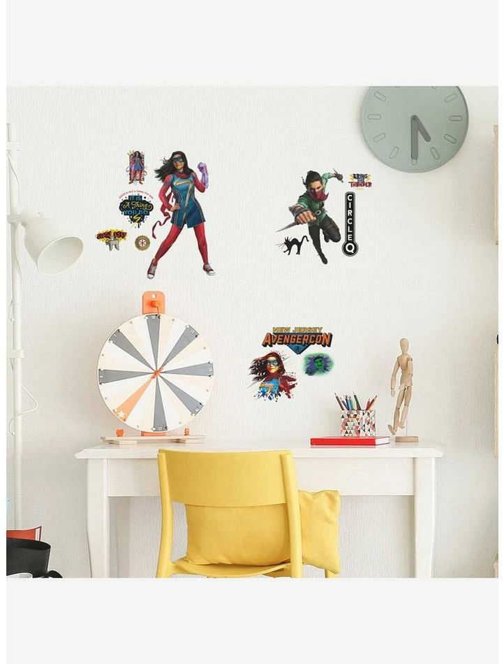 Calling all Ms. Marvel fans! Bring a giant Ms. Marvel to your walls with a Ms. Marvel Peel and Stick Wall Decal set. Make the scene come to life and move each decal around as you need. The revolutionary adhesive backing will not ruin your paint or dry wall. Includes 30 decals – 1.44 inches x 1.42 inches to 7.95 inches to 15.08 inches.