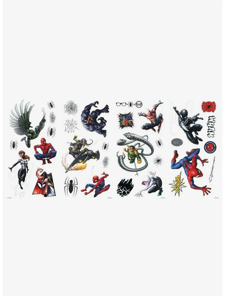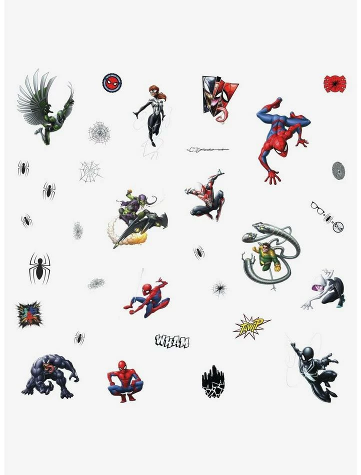 Update a space with Spider-Man Favorite Characters Peel and Stick Wall Decals. Simply peel and stick to any smooth, flat surface for instant results. Remove, reposition and reuse as often as needed. No sticky residue is left behind. Walls stay clean every time. Add personality to your walls today with Wall Decals!