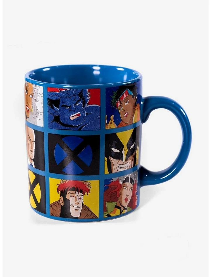 Officially licensed product. 12 oz. mug included featuring The Beast, Jubilee, Wolverine, Gambit and Rogue.