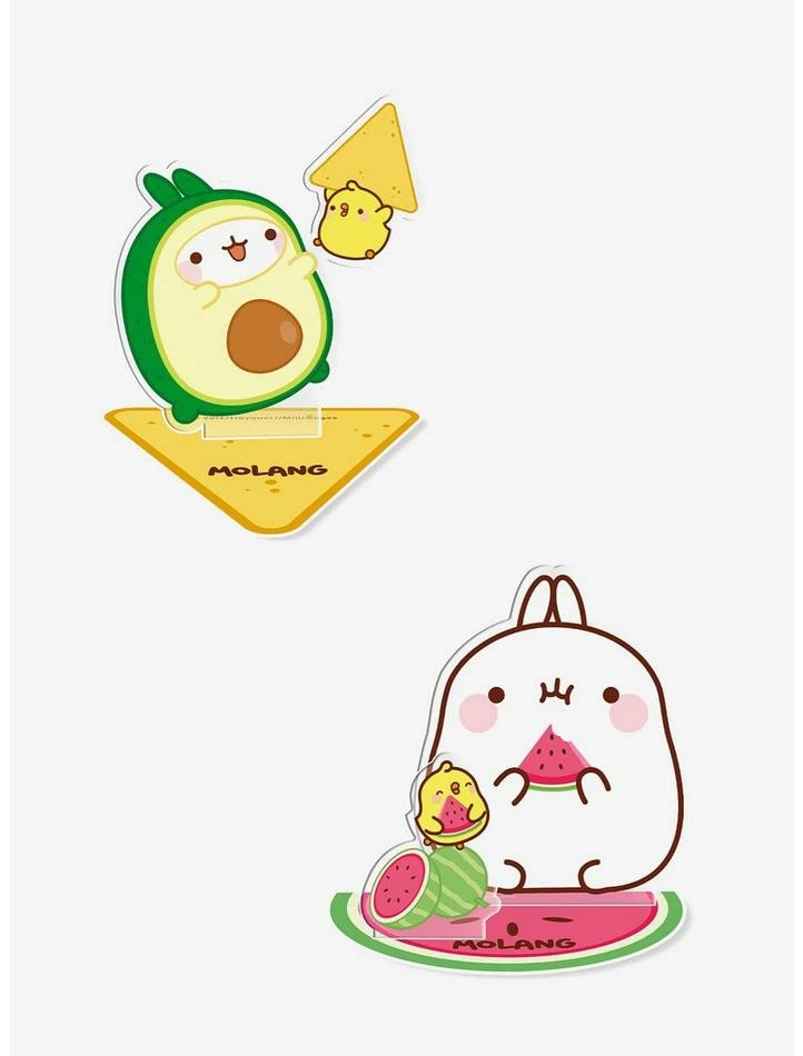 Officially licensed Molang products. Bundle includes (1) Molang Watermelon Acryl and (1) Molang Avocado Acryl. Designs featuring Molang and Piu Piu. Each figure is approximately 4″ tall. Each figure includes a themed base.