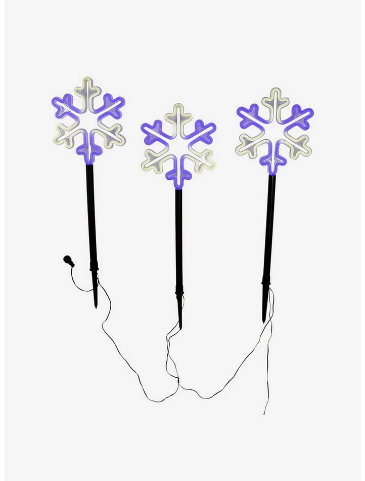 Decorate your yard with this 26″ Multi Color LED Snowflake Yard Stake Set. This stake set features three snowflakes with multiple functions that can be placed in your yard with the attached stakes. Each stake includes 168 LED bulbs for a total of 504 lights. The 8 light functions include 1.comb 2.in waves 3.sequential 4.slo glo 5.chasing flash 6.slow fade 7.twinkle flash 8.steady. This set also includes a 118″ lead wire 36″ spacing and 6″ end connector.