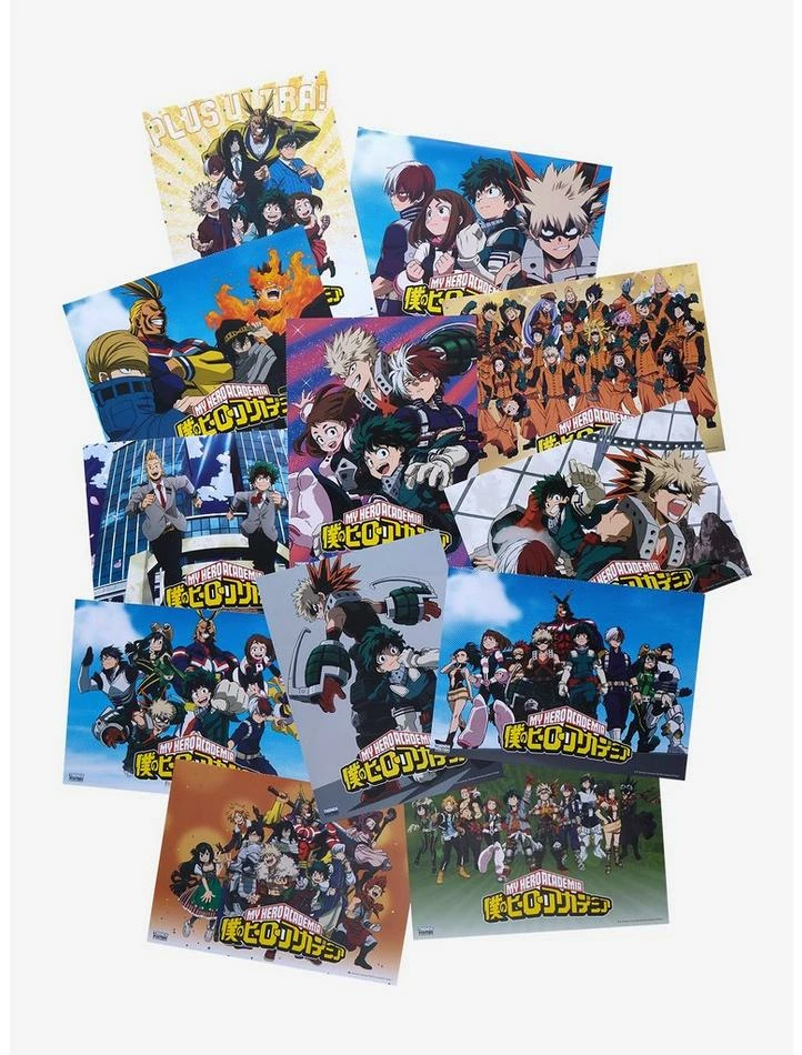 Deck out the walls of your U. A. dorm with some Plus Ultra artwork! From My Hero Academia, this poster book includes 12 posters to choose from, all depicting designs with your favorite pro heroes in training!ย