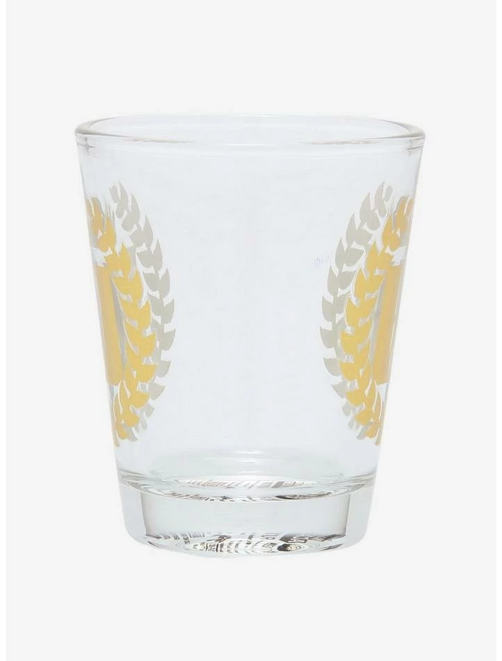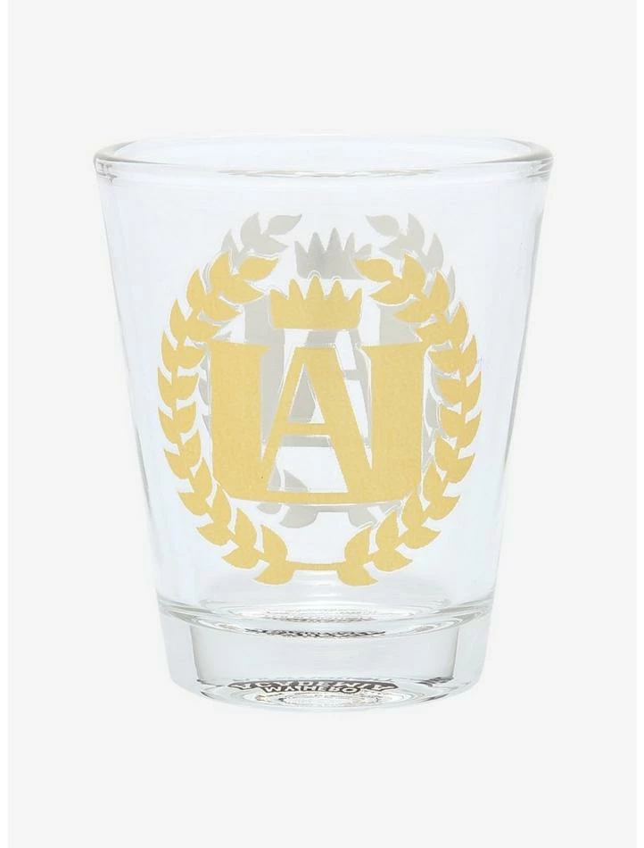Cheers to finishing a hard day of pro hero training! Celebrate in Plus Ultra style with this My Hero Academia mini glass, featuring a gold tone print of U.A.’s logo on both sides.