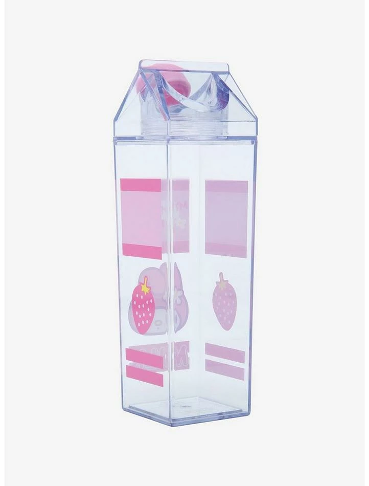 Stay hydrated in the cutest way possible with this carton-shaped water bottle featuring a My Melody strawberry milk design. Twist-off cap.