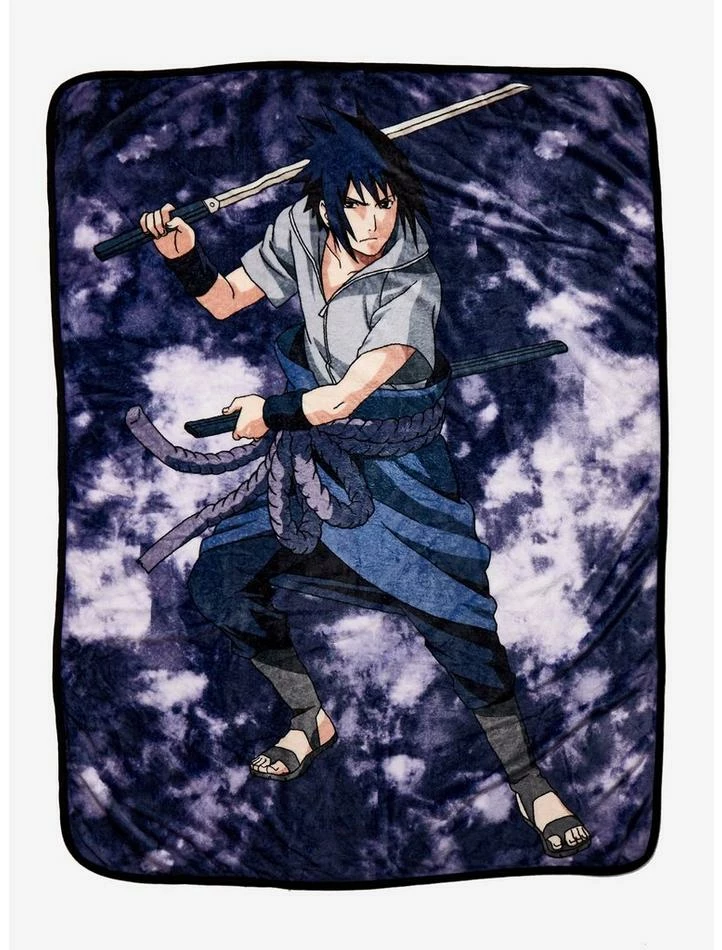 Binge Naruto Shippuden cuddled up with your fave character with this cozy throw blanket! It has a purple wash print and features Sasuke posing with his chokuto.