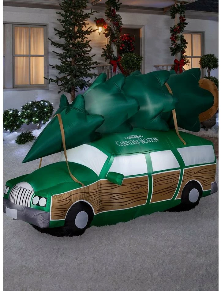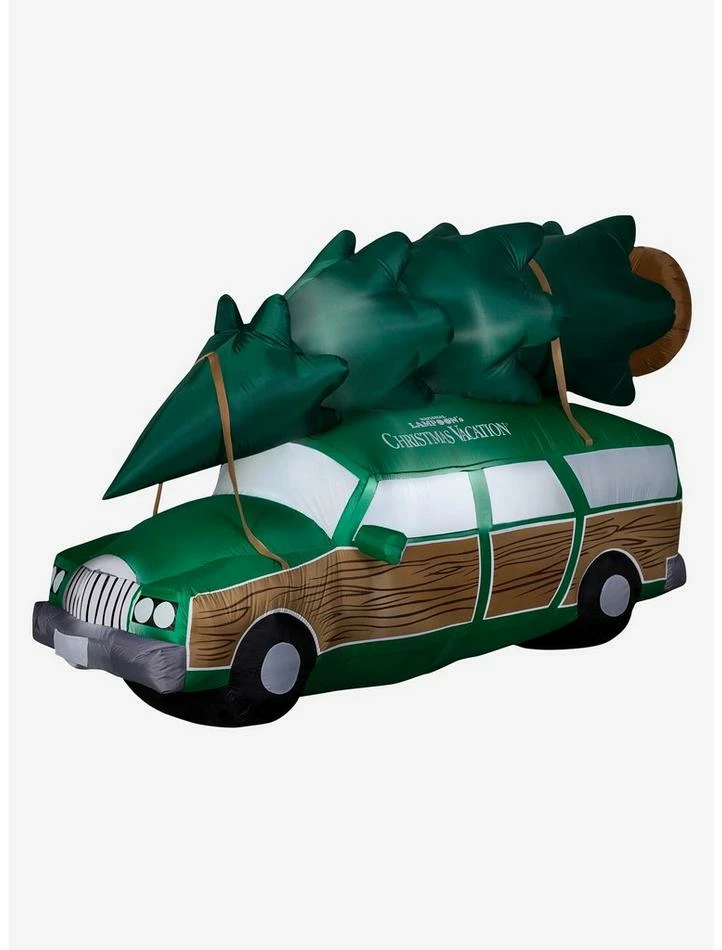 Deck the yard with a hilarious Airblown Inflatable featuring the Griswold family station wagon from National Lampoon’s Christmas Vacation! Decked out for the season with a Christmas Tree strapped on top, this iconic inflatable makes an eye-catching addition to your Christmas decorations. Setup is super simple. Just plug it in, stake it down and watch the magic unfold. Includes everything needed for easy outdoor setup.