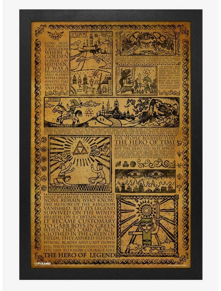 Bring your Zelda fandom to any room in the house with this high quality framed ‘Story of the Hero’ poster print! Premium 11″ x 17″ print is framed to 13″ x 19″ and coated with a protective clear gel, which not only makes it super durable – it gives it that “movie screen” texture, too. Instantly hang your new work of art and display your love for Link for years to come!