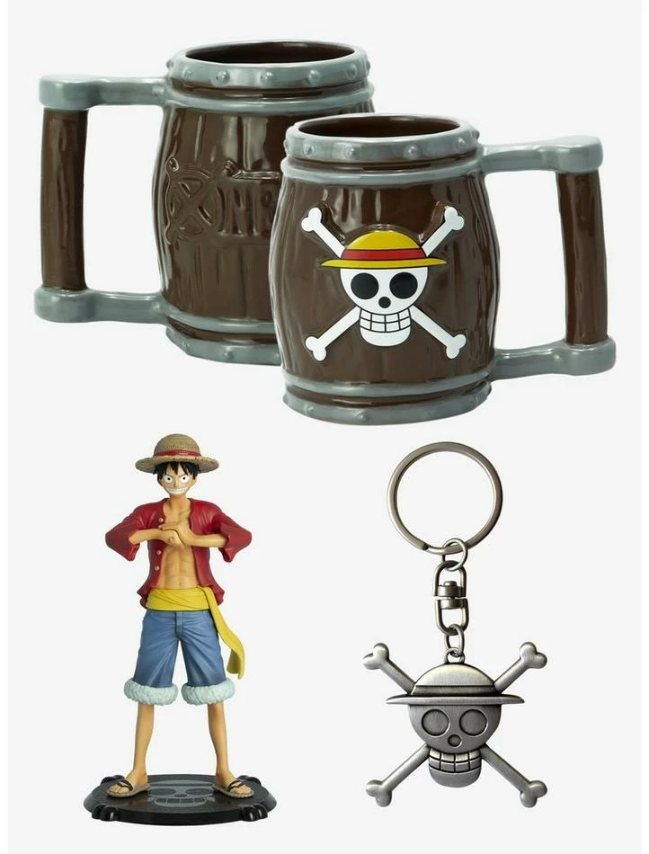 Officially licensed One Piece set contains 1 Luffy SFC Figure, 1 3D Straw Hat Mug, and 1 3D Straw Hat Crew Keychain. Mug is hand wash only. Figure measures approximately 6.5″ tall. Keychain features a brushed metal finish.