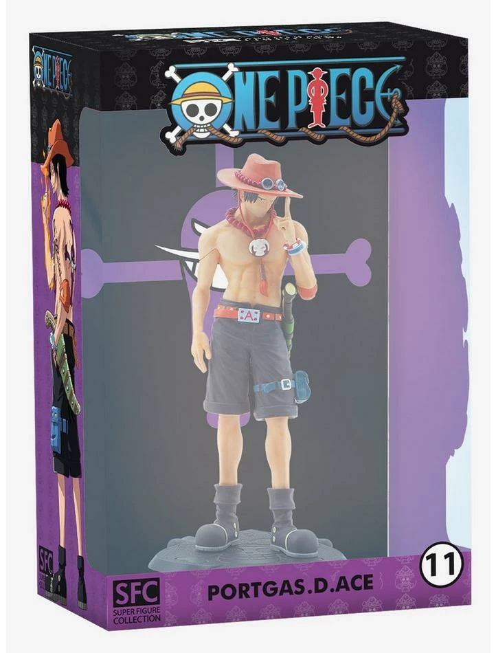 Officially licensed One Piece figure. Collectible, nonarticulated figurine featuring Portgas D. Ace on a Spade Pirates base. SFC Figure #011. Ages 14+.