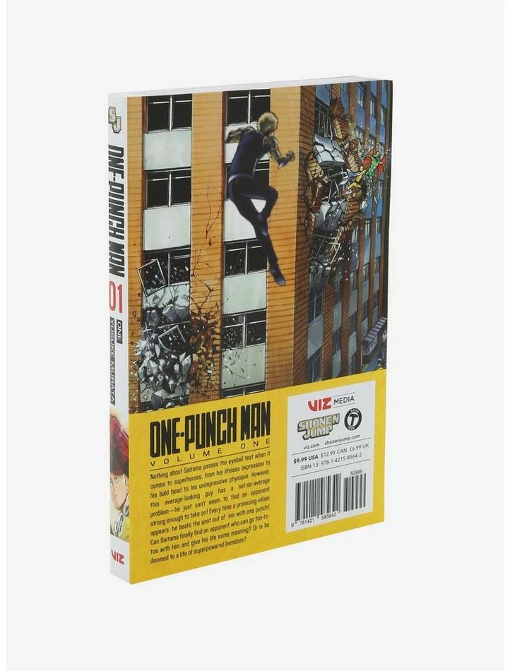 Nothing about Saitama passes the eyeball test when it comes to superheroes, from his lifeless expression to his bald head to his unimpressive physique. However, this average-looking guy has a not-so-average problem – he just can’t seem to find an opponent strong enough to take on! Every time a promising villain appears, he beats the snot out of ’em with one punch! Can Saitama finally find an opponent who can go toe-to-toe with him and give his life some meaning? Or is he doomed to a life of superpowered boredom? Start your One Punch ManΒ journey with volume 1 of the manga.