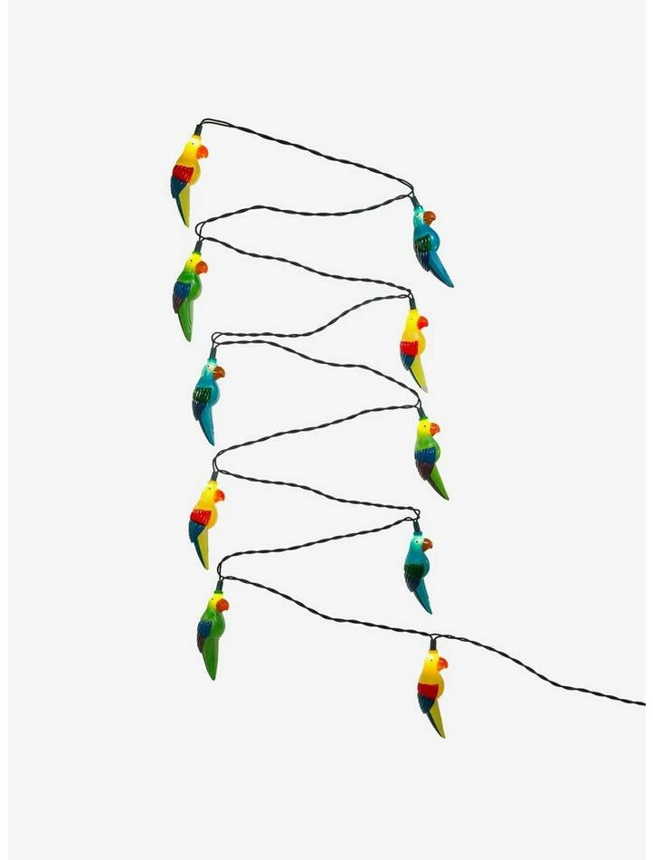 Add a tropical flair to your holiday or party decor with this 10-Light Parrot Light Set from Kurt Adler! Each of the 10 lights in this set resembles a parrot in a mix of bright, tropical colors. Each set has a 30-inch green lead wire, 12-inch bulb spacing, incandescent clear bulbs, 4 spare bulbs, and 1 fuse.