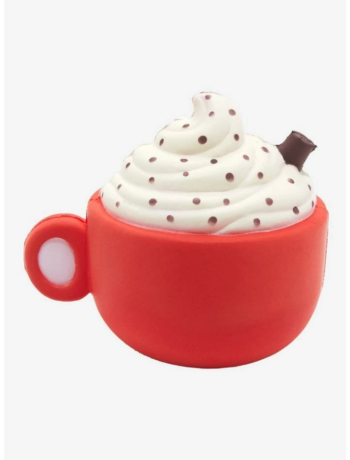 Holiday shopping can get stressful. Relieve some of that stress with this supercute squishy toy, shaped like a peppermint mocha coffee cup.