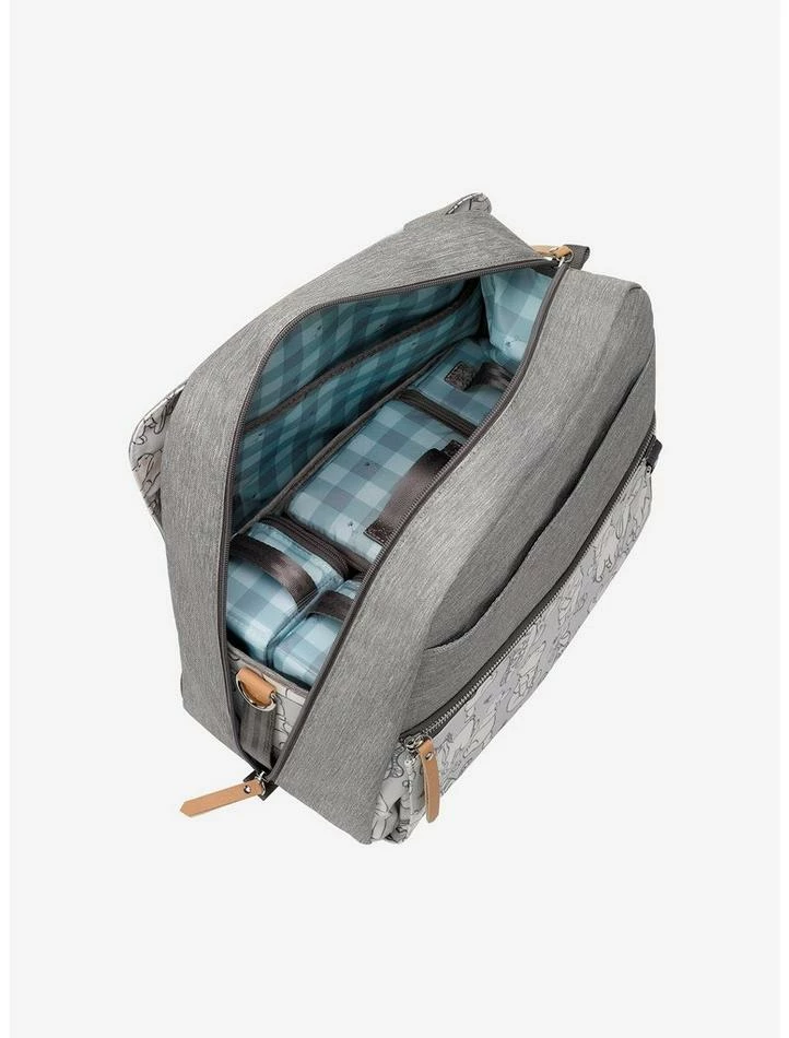 The sleek and modern Meta Backpack is outfitted in the happy smiles of everyone’s favorite childhood characters, with a picnic-inspired plaid lining and delightful Hunny pot coin purse. Features a spacious, well organized interior with full zipper for easy access to contents, a front zippered pocket with PEVA antimicrobial lining for snacks, a hidden insulated bottle pocket, and leather detailing.