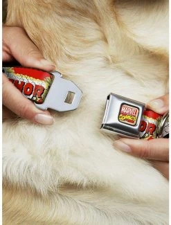 Brand new ๐ Marvel Thor ๐จ Hammer Red Yellow White Seatbelt Buckle ๐ฆฎ Dog Collar โญ