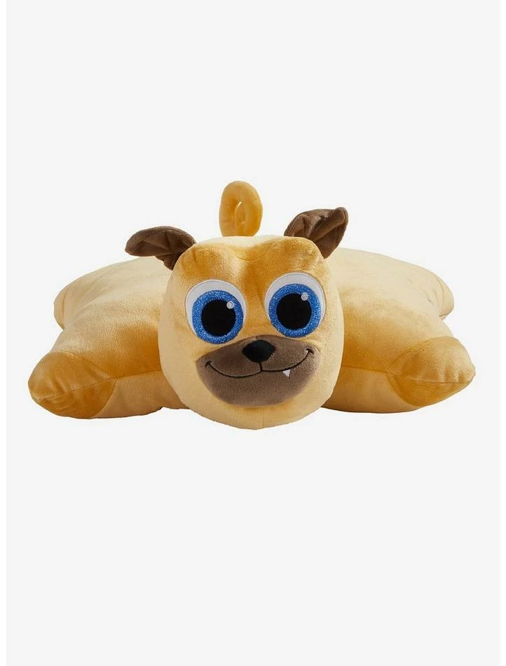 Pillow Pets, bring you the newest beloved Disney characters bingo and Rolly from puppy dog pals! The Disney Rolly pillow pet delivers all the fun play of a stuffed animal and then turns into a comfortable 16 inch sized pillow. From the new hit cartoon enjoy a touch of room decor along with the practicality of everyday use. A friend so cuddly you’ll never want to put it down! Starts out as your pal, then unfasten its belly and quickly becomes a comfortable flat pillow! This super soft Chenille plush folding stuffed animal is an ideal companion & not to mention a comforting partner on road trips or airplane rides. The Rolly pillow pet is made of high quality washable chenille. Official Pillow Pets licensed Disney merchandise.