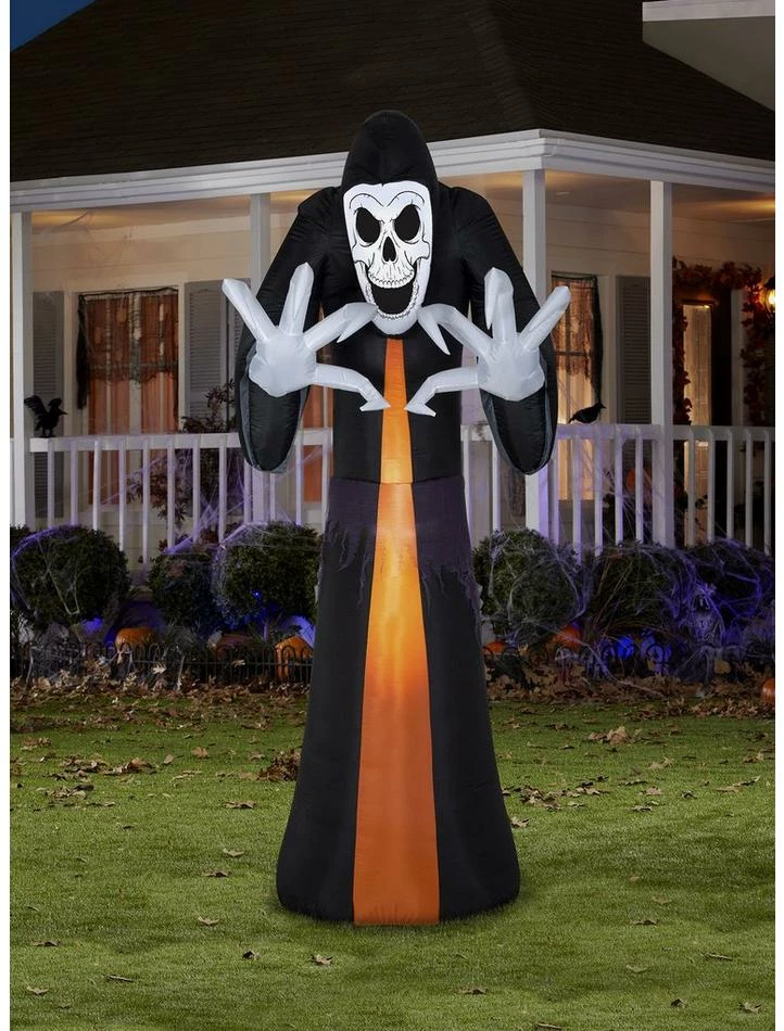 Frighten your guests with this creepy Airblown inflatable character. The reaper is a perfect addition to any Halloween scene. Setup is super simple. Just plug it in, stake it down and watch the magic unfold. Display this spooky Halloween decoration as a standalone or combine it with other Airblown Inflatables to create a custom scene. Includes everything needed for easy outdoor setup.