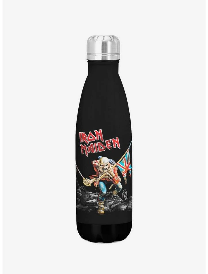 Keep your drinks cool or hot with this Iron Maiden Trooper stainless steel drink bottle! This bottle is vacuum insulated to keep your drink cold for up to 24 hours or hot for up to 12 hours. Perfect for school, festivals or hiking! 16.9oz capacity. Non-dishwasher safe.