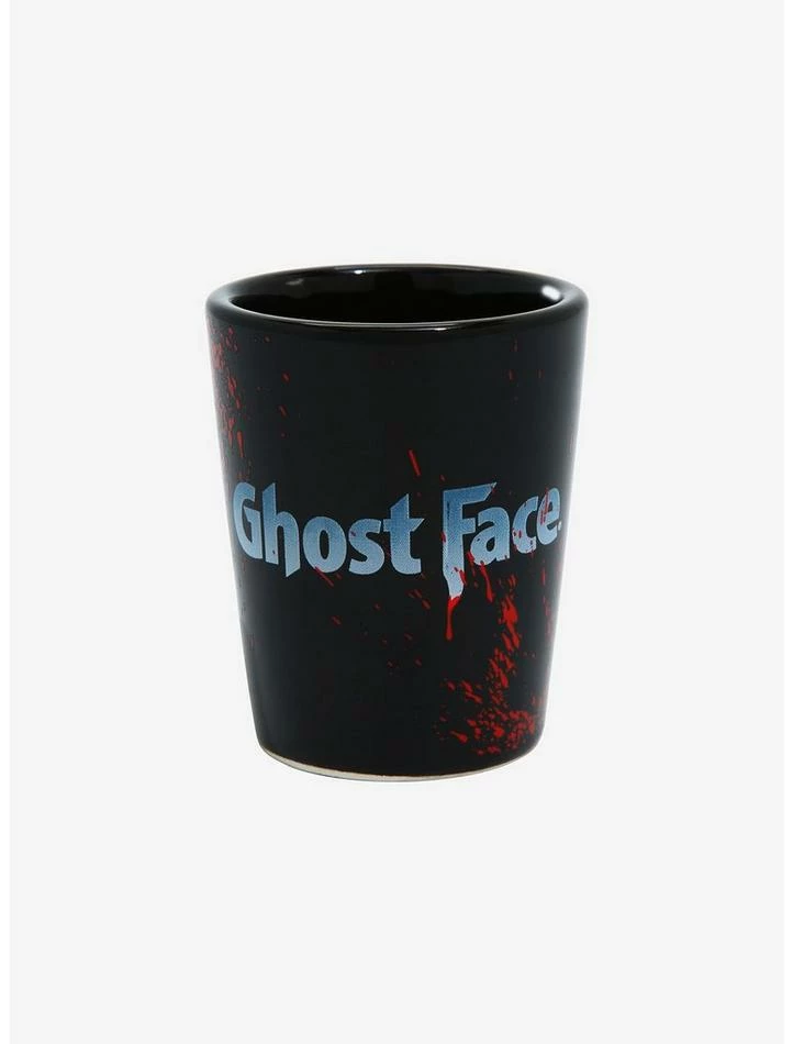 Your throat screaming for something to drink? Take a sip outta this killer mini glass, if you dare! From Scream, this glass features a print of Ghost Face in a bloody red silhouette and blood splatter detailing.
