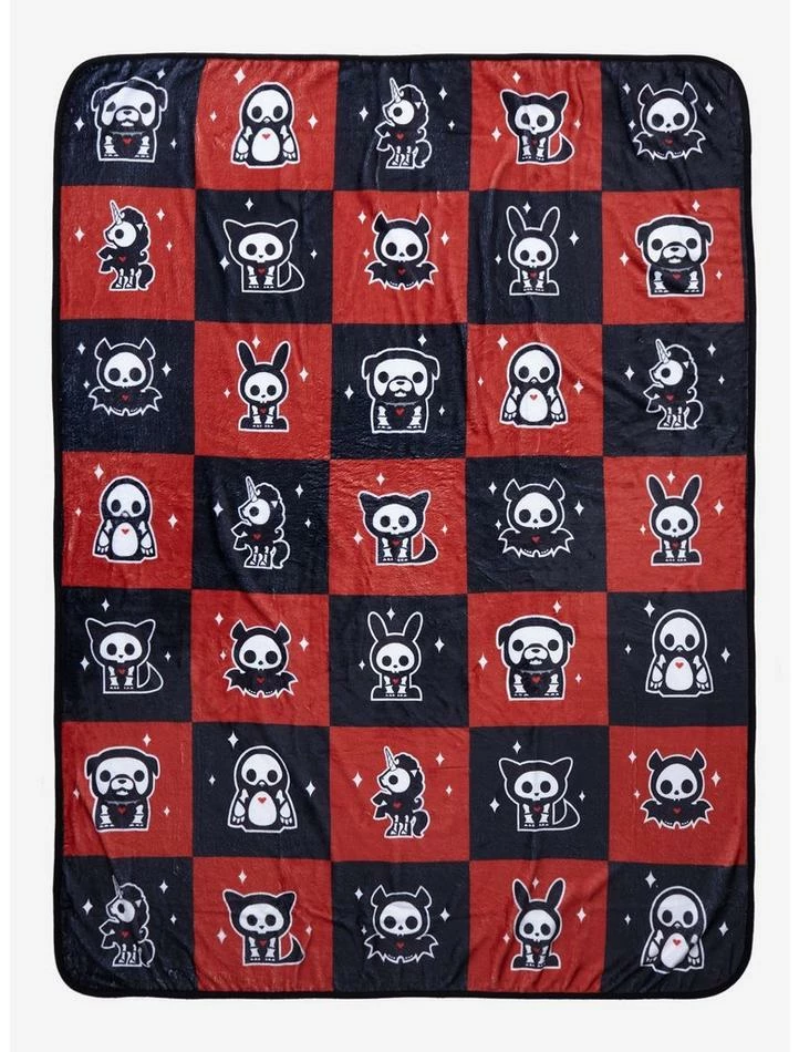 Who needs a fire to keep warm when you’ve got these undead cuties? Cuddle up with this super soft throw blanket, featuring a black and red grid design highlighting all your favorite Skelanimals, including Kit, Diego, Jack and more!