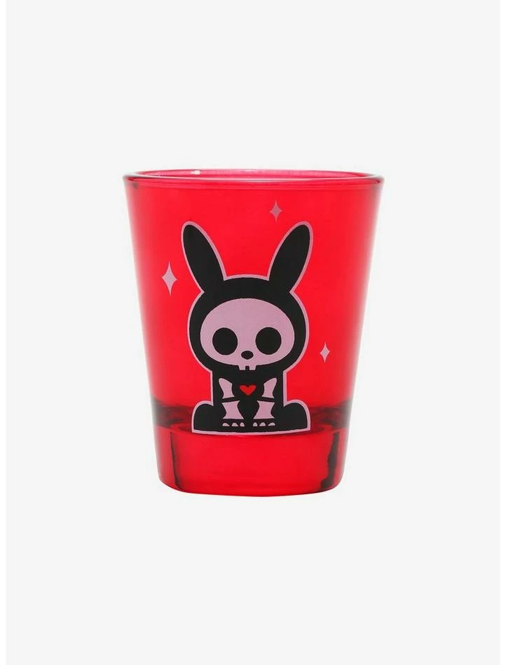 Pour one out for this recently deceased cutie! This red Skelanimals mini glass features your fave, Jack the Rabbit!