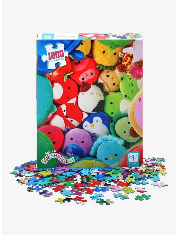 Take your love for Squishmallows to the next level! Grow your collection by piecing together your favorite squishy friends with this 1,000 piece puzzle. Featuring Squishmallows from various squads all cuddled up together for a squish-tacular time!