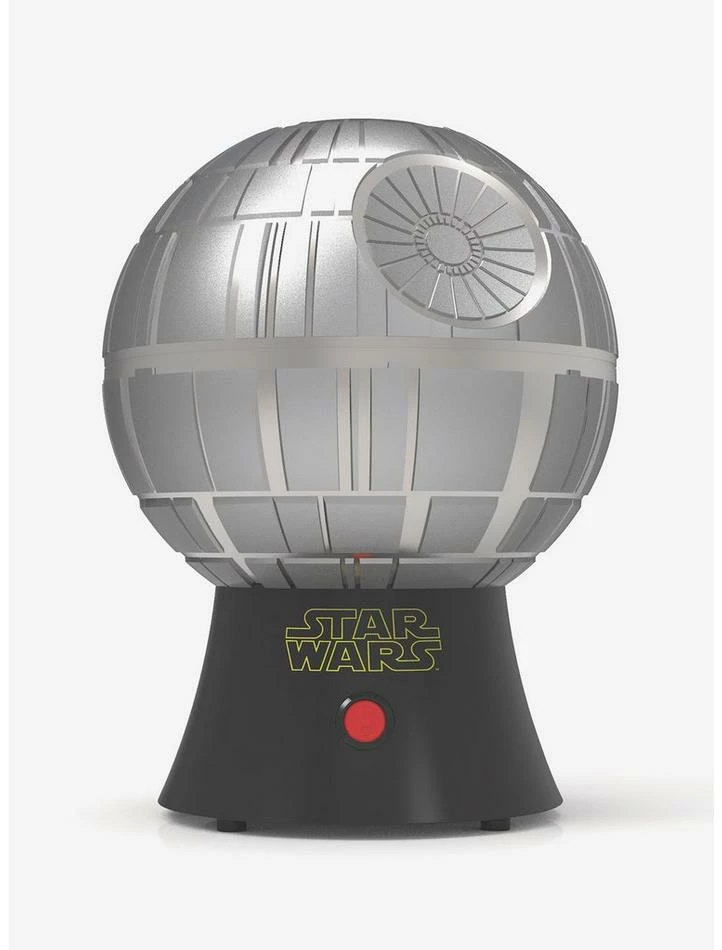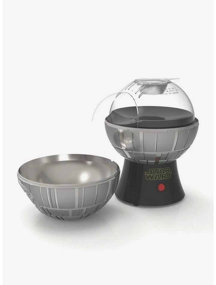 In the Star Wars movies, the Death Star has enough power to destroy an entire planet. We promise our version won’t even destroy your taste buds! The Death Star popcorn maker is a perfect choice for any Star Wars fan. You’ll feel the power every time you use this fun themed air popper to enjoy fresh popcorn while you watch your favorite Star Wars film. Pops using hot air and features a grey, with metallic flake finish.
