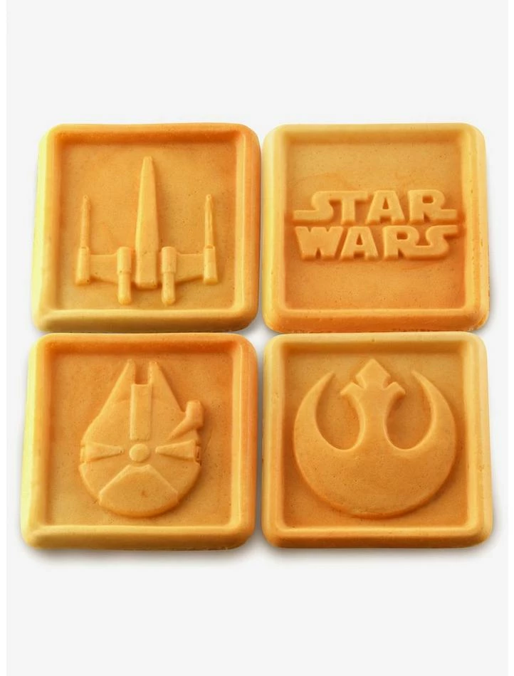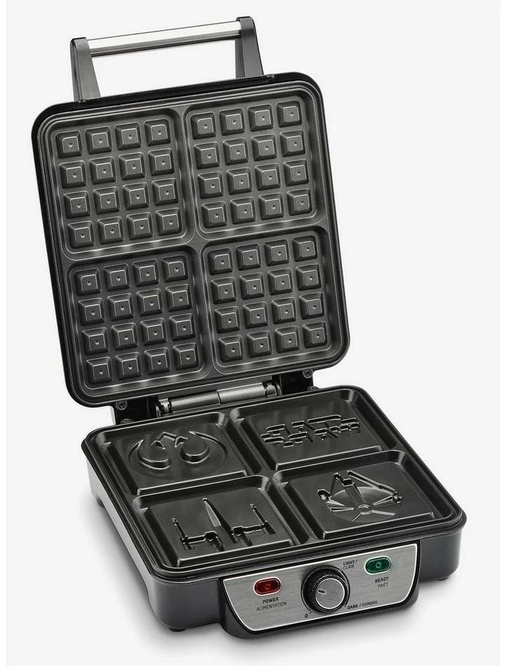 Start your day like a Jedi with a plate full of golden brown waffles emblazoned with Star Wars icons. Each waffle is a 4.25″ square imprinted with a different icon including the Rebel Alliance Symbol, Star Wars Logo, X-Wing, and Millennium Falcon. With an adjustable browning control and non-stick coating, mornings will be exciting and easy.
