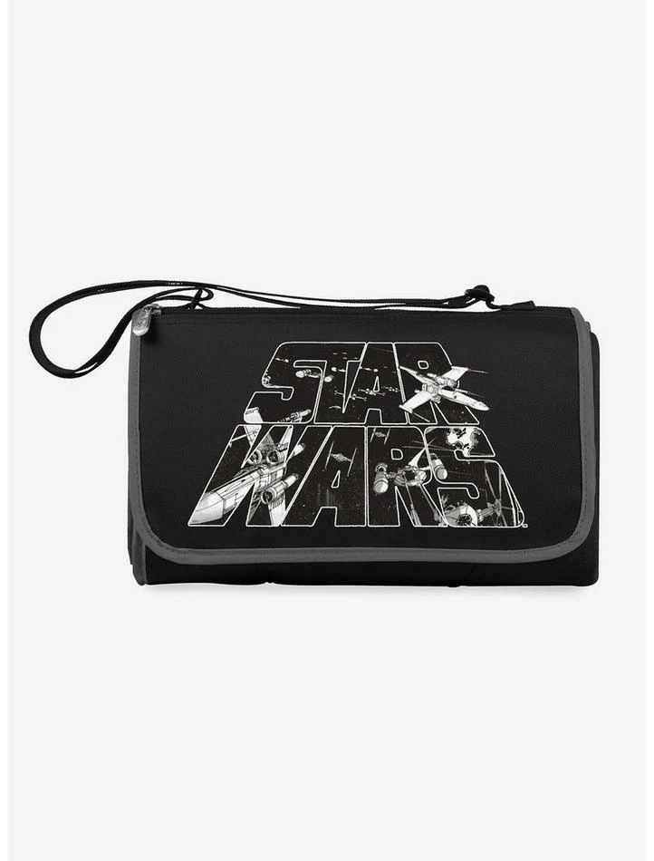 Outdoor picnic blanket with shoulder strap and zippered pocket in flap. Made of polyester fleece with water-resistant underside. Open, 59″ x 51″ (3,009 sq. inches) Folded, 13″ x 8″ x 3″