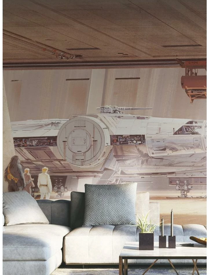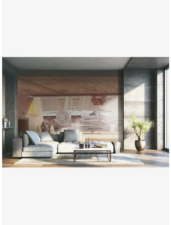Affectionately known as the fastest hunk of junk in the galaxy and now available in spectacular mural size, this epic, officially licensed, Millennium Falcon peel and stick wallpaper mural design from RoomMates makes an exciting statement for Star Wars enthusiasts of all ages. True Star Wars aficionados will immediately recognize the art by famed Star Wars conceptual designer and illustrator Ralph McQuarrie. RoomMates peel and stick murals are an easy and affordable way to decorate; simply peel off the paper backing and smooth onto the wall. When it’s time to redecorate, remove in full strips with no remaining sticky residue or damage to walls. Includes 1 mural: 7 panels – 18 inches wide x 72 inches. Mural is 10.5 feet wide x 6 feet high.
