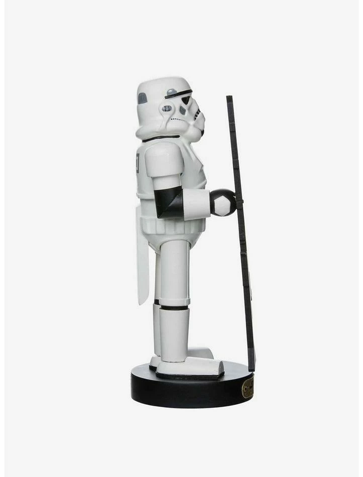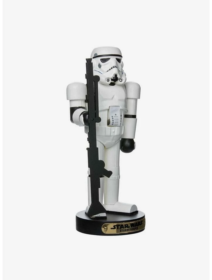This Kurt Adler Star Wars Stormtrooper Nutcracker is a fun, unique way to add to your holiday decor, Star Wars collection, or nutcracker collection! This Stormtrooper is presented in his signature white armor holding a weapon. He is standing on a round black base with a “Star Wars Stormtrooper” plaque.