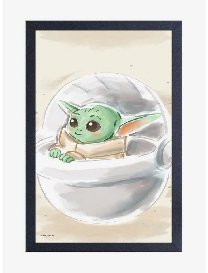 Bring your Star Wars fandom to any room in the house with this high quality framed The Mandalorian poster print! Premium 11″ x 17″ print is framed to 13″ x 19″ and coated with a protective clear gel, which not only makes it super durable – it gives it that “movie screen” texture, too. Instantly hang your new work of art and enjoy a glimpse of Baby Yoda… ahem… we mean The Child… in his floating crib for years to come!