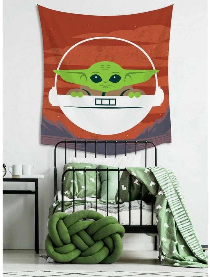 The Child wall tapestry brings your favorite character, Grogu ? or Baby Yoda as some like to call him – from Star Wars The Mandalorian, into prominent display on your walls. The Child is featured is his bassinet in a sienna sky with soft purple shadows covering the land. 60? high and 52? wide the wall hanging is easy to install (simply use a couple of thumb tacks/push pins). Tapestries are an effortless way to decorate in minutes.