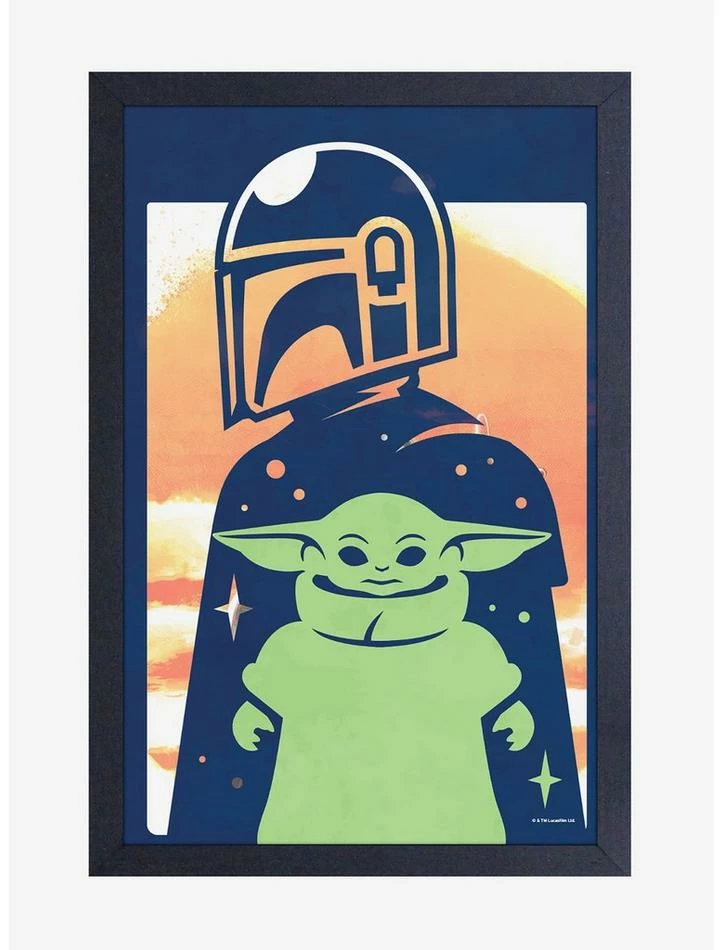 Bring your Star Wars fandom to any room in the house with this high quality framed The Mandalorian poster print! Premium 11″ x 17″ print is framed to 13″ x 19″ and coated with a protective clear gel, which not only makes it super durable – it gives it that “movie screen” texture, too. Instantly hang your new work of art and enjoy this creatively designed image of The Child in green – and Mando in blue – on your wall for years to come!