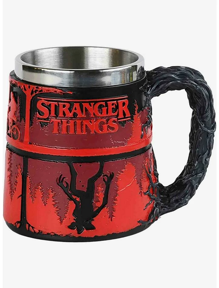 A Netflix original series, Stranger Things took the world by storm when it was released in 2016. A Sci-Fi horror, the story takes place in the fictional town of Hawkins Indiana during the 1980?s, where the government are examining the paranormal which also involves experimenting on humans. When one of these experiments goes wrong they inadvertently open a doorway to an alternate world known as the ?Upside Down? allowing a dangerous creature to enter our realm. When a young boy called Will mysteriously disappears, his friends decide to investigate. This introduces them to a girl known only as eleven; a seemingly ordinary girl, who just so happens to be able to flip cars with her mind. The events that follow this meeting shake the very foundations of the sleepy town of Hawkins. Stranger Things has been praised by fans and critics alike, with the release of season 4, it is fair to say the world has gone crazy for Stranger Things. Welcome to the Upside Down. Polyresin Tankard is made of Resin, 13oz/350ml.