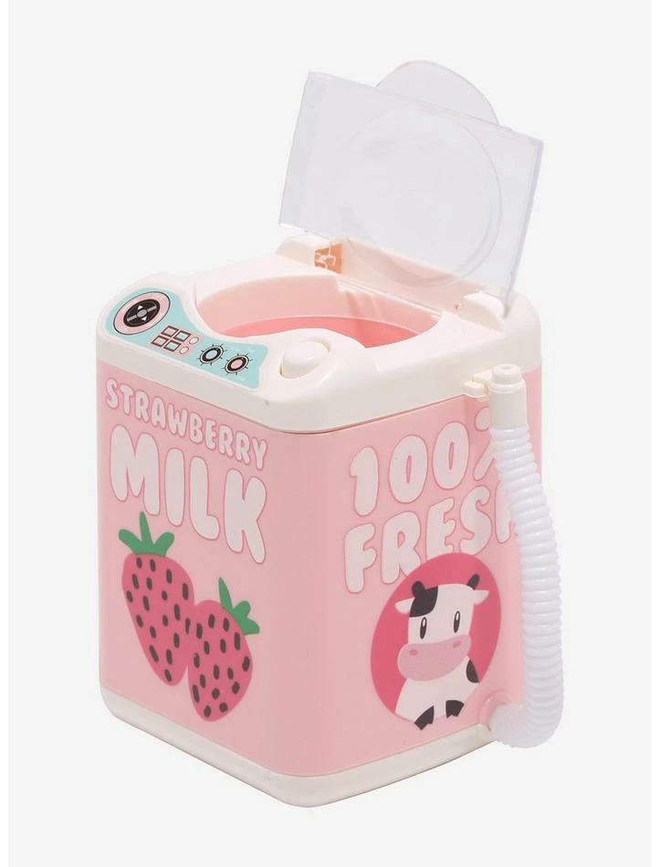 Get your dirty makeup sponges 100% fresh just like Strawberry Milk! Open the lid of this washing machine, pour in warm water and soap, and let it do its thing! The machine will spin the sponge for 30 seconds, then the attached hose will drain the water.