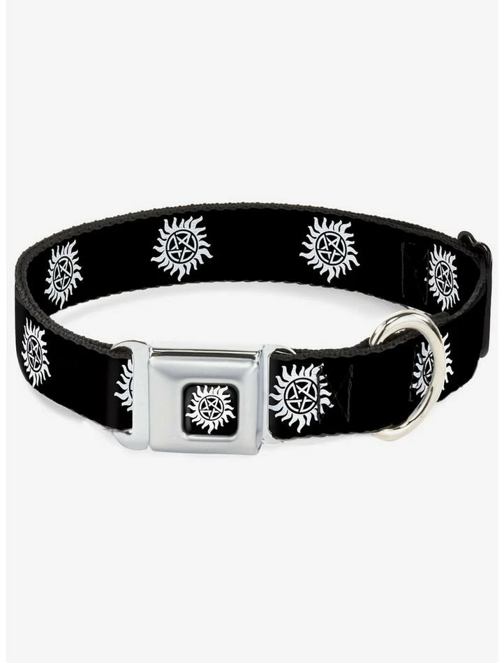 Discount ๐ Supernatural Winchester Pentagram Repeat Black White Seatbelt Buckle ๐ Dog Collar ๐