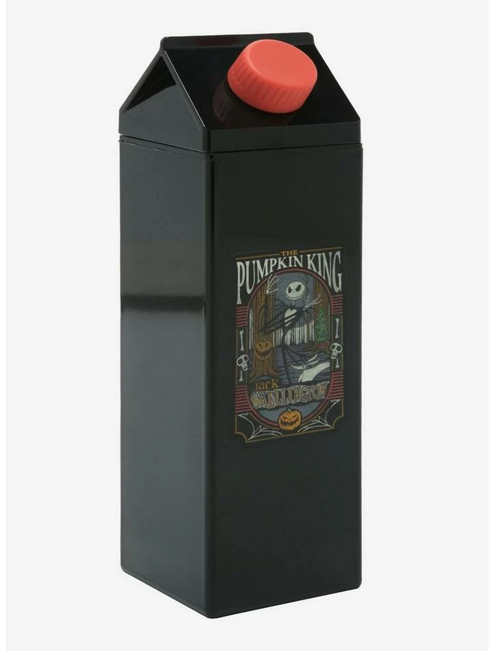 If you’re going on an adventure outside Halloween Town, make sure you stay hydrated with this black carton water bottle from The Nightmare Before Christmas featuring a Jack Skellington poster graphic and orange screw-on lid.